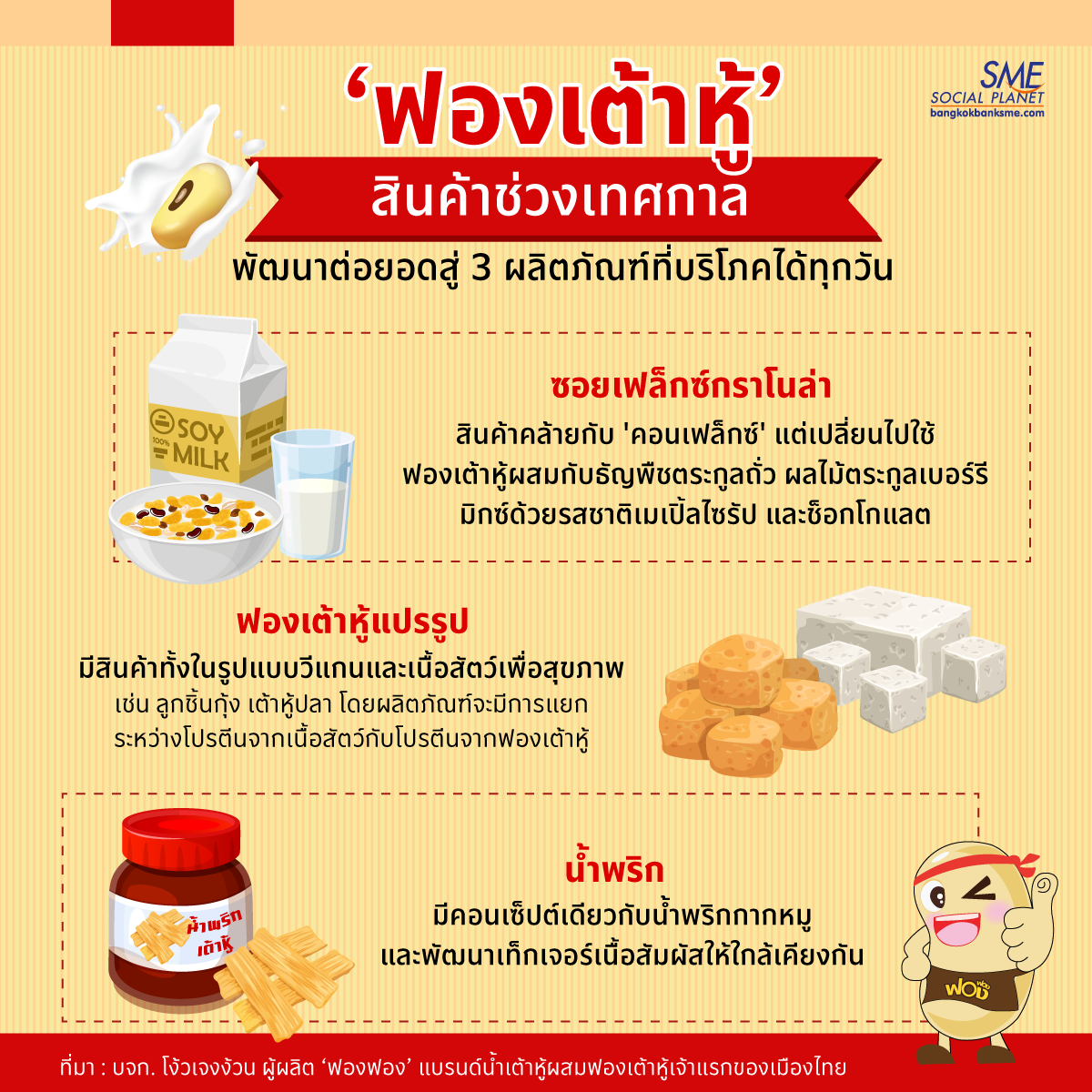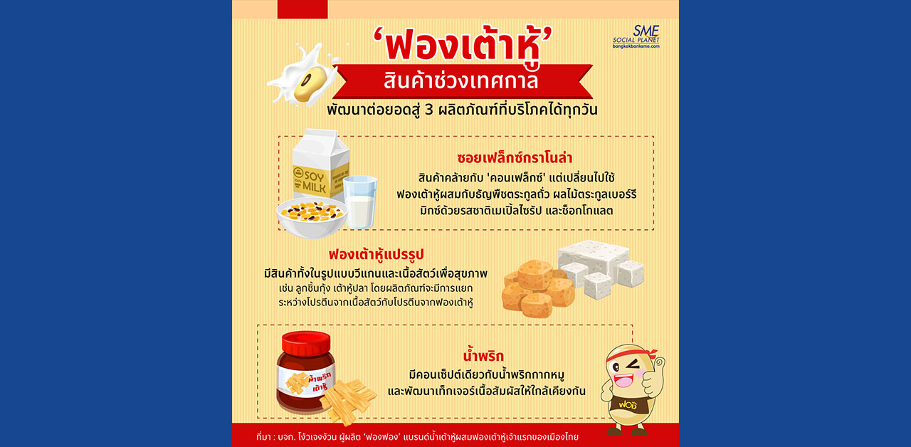 รายละเอียดเพิ่มเติม : https://www.bangkokbanksme.com/en/fong-fong-tofu-health-loving-trend