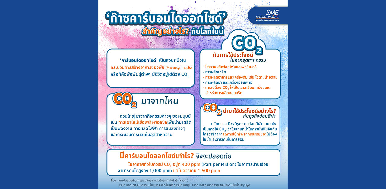 เรามักได้ยินเกี่ยวกับเรื่องที่ ‘ก๊าซคาร์บอนไดออกไซด์’ ส่งผลกระทบต่อสิ่งแวดล้อมอยู่บ่อยครั้ง แต่รู้หรือไม่ว่า ‘ก๊าซ CO2’ ก็มีประโยชน์สำคัญกับโลกเราเช่นเดียวกัน ส่วนจะมีอะไรบ้างนั้น Bangkok Bank SME มีคำตอบ