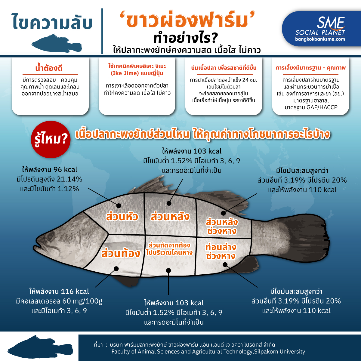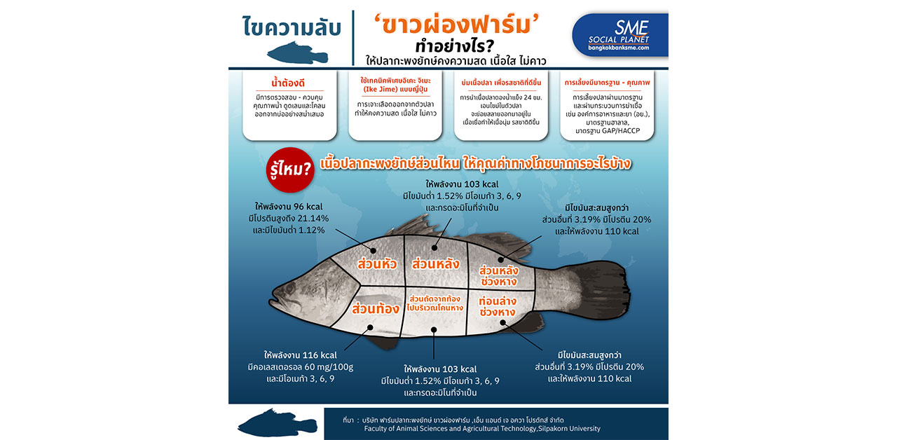 บริษัท เอ็น แอนด์ เจ อควา โปรดักส์ จำกัด เจ้าของ ‘ขาวผ่องฟาร์ม’ ซึ่งเป็นฟาร์มปลากะพงยักษ์เบอร์หนึ่งของเมืองไทย คืออีกหนึ่งตัวอย่างการเติบโตด้วย Quality Management ที่มุ่งมั่นให้ปลากะพงยักษ์ที่เลี้ยงเป็นปลาไทยที่มีคุณภาพดีไม่แพ้ปลานำเข้าจากต่างประเทศ เขามีเคล็ดลับอย่างไร? ในการทำให้ปลากะพงสามารถนํามาบริโภคแบบ เนื้อปลาดิบ หรือ ‘ซาซิมิ’ Bangkok Bank SME มีคำตอบ