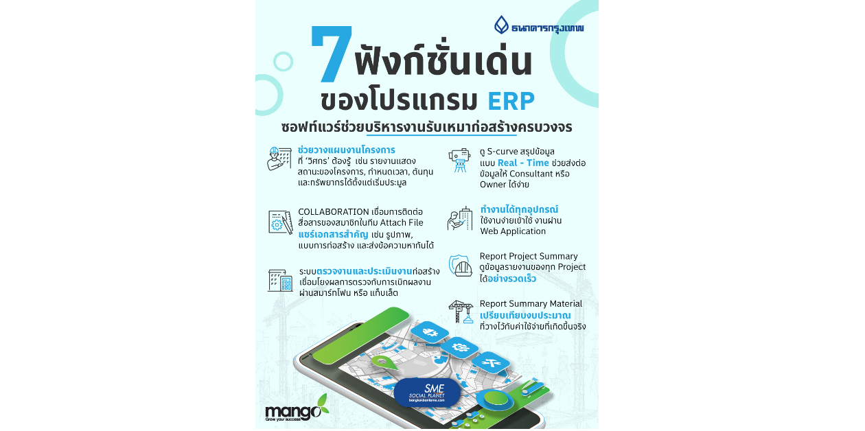#MangoConsultant #ERPก่อสร้าง #ERPรับเหมาก่อสร้าง #ERPรับเหมา #ERPอสังหาฯ #ระบบอีอาร์พี #ERP #PeopleManagement #bangkokbank #bangkokbanksme #SME #SMEInFocus