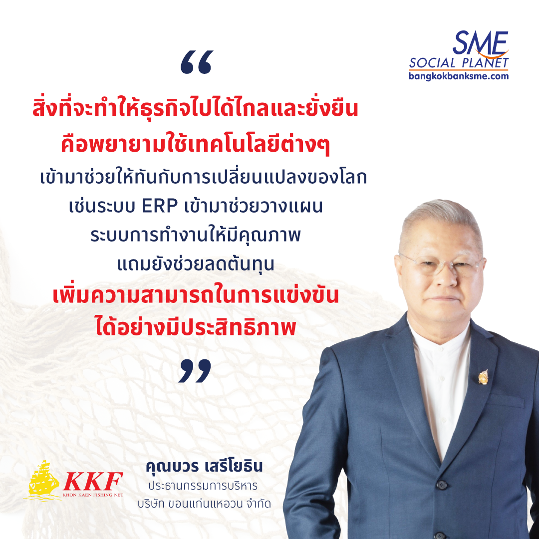 ขอนแก่นแหอวน ผู้สร้างธุรกิจแหอวนระดับโลกยาวนานกว่า 44 ปี ที่มีแนวคิดการบริหารธุรกิจแบบครอบครัวที่น่าสนใจ กับนโยบายพัฒนาอุตสาหกรรมให้ทันกับการเปลี่ยนแปลงของโลกยุคใหม่ โดยนำเทคโนโลยีเข้ามาช่วยในการผลิตต่างๆ มากมาย ไม่ว่าจะเป็นการใช้ระบบ ERP (Enterprise Resource Planning) กุญแจสำคัญในการปรับปรุงการเติบโตทางธุรกิจและผลกำไรอย่างมีประสิทธิภาพ