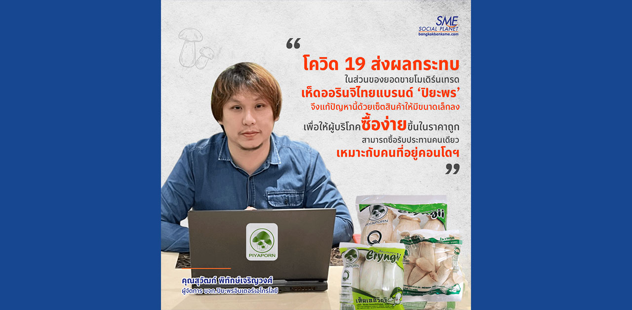 สถานการณ์โควิด 19 ส่งผลกระทบต่อยอดขายกลุ่มโมเดิร์นเทรดประมาณ 30% เพราะมีสินค้าที่บริษัทส่งให้แบรนด์หลักในห้างสรรพสินค้า บจก.ปิยะพรอินเตอร์เอโกรโลยี ธุรกิจผู้บุกเบิกเห็ดออรินจิไทย จึงแก้ปัญหานี้ด้วยการเซ็ตสินค้าให้มีขนาดเล็กลง ตอบโจทย์ความต้องของลูกค้าช่วงเกิดวิกฤต