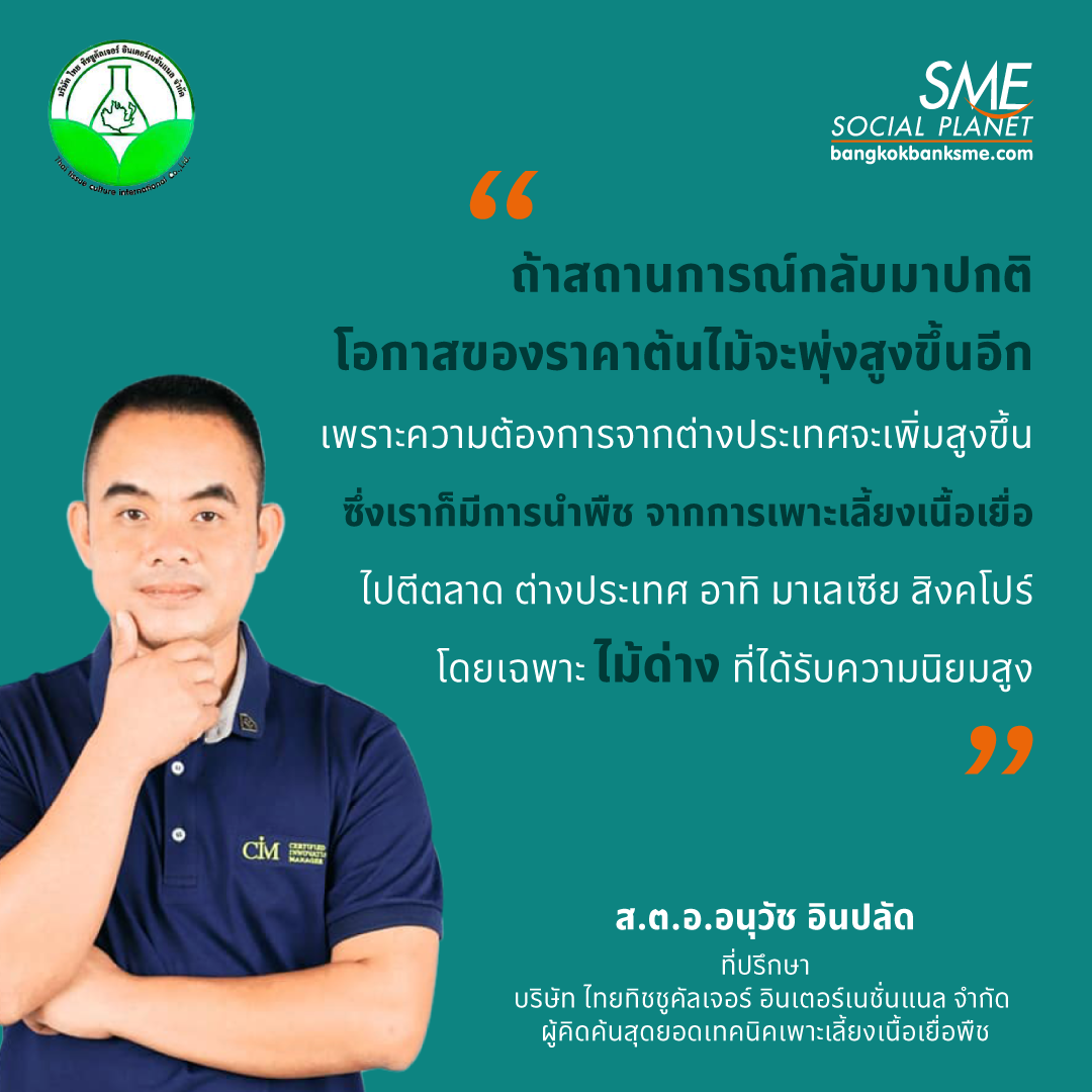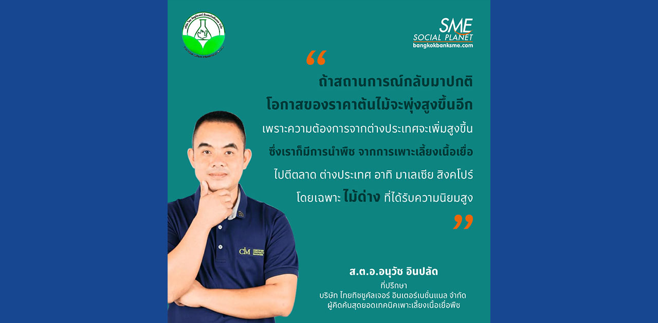 มองหาโอกาสจากสิ่งที่รัก โดยไม่ต้องทิ้งงานประจำ กับ นวัตกรรม ‘เพาะเลี้ยงเนื้อเยื่อ’ ไทยทิชชูคัลเจอร์ สู่ธุรกิจต้นไม้รายได้งาม จากการลองผิดลองถูก มองเห็นโอกาสความต้องการของตลาด จนคิดค้นระบบการผลิตกล้าพันธุ์ให้ได้พืชที่เหมาะสมกับภูมิประเทศ และให้ผลผลิตสูงในระยะเวลาอันรวดเร็ว กว่า 140 สายพันธุ์ สร้างมูลค่าให้กับเศรษฐกิจ พร้อมรองรับตลาดต้นไม้ที่กำลังเติบโต