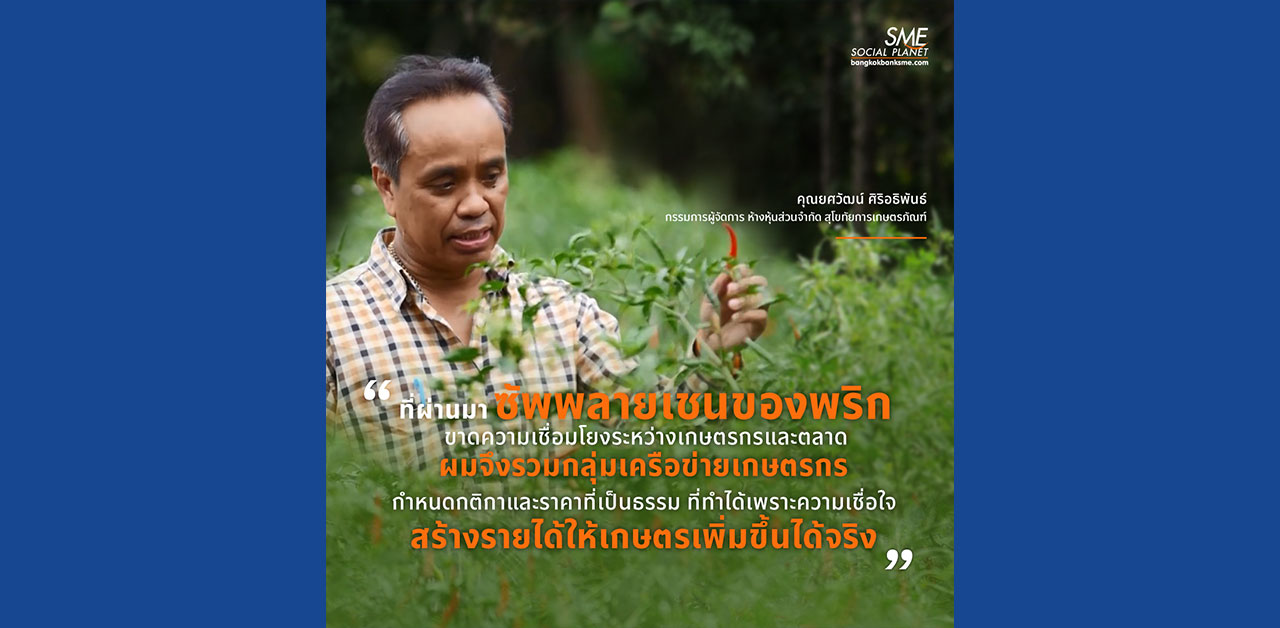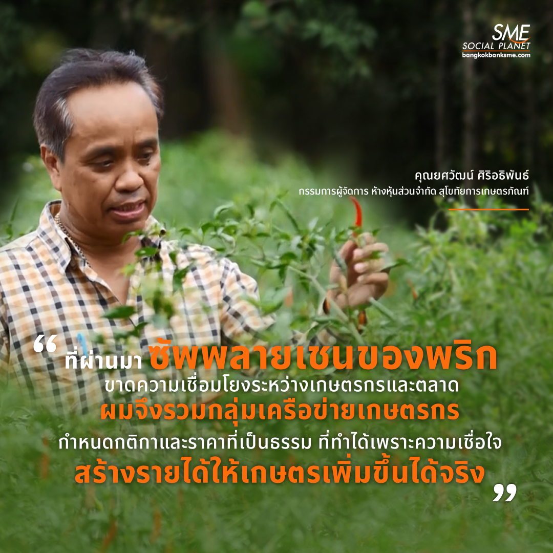 ความสำเร็จของการรวมซัพพลายเชนภาคเกษตร ระหว่างเกษตรกรผู้ผลิต ผู้ประสานงาน และโรงงานแปรรูป จากจุดเริ่มต้นการรวมกลุ่มเครือข่ายเกษตรกรผู้ปลูกพริกในจังหวัดสุโขทัยและจังหวัดใกล้เคียง ที่สร้างรายได้ให้เกษตรกรมีความเป็นอยู่ที่ดียิ่งขึ้น