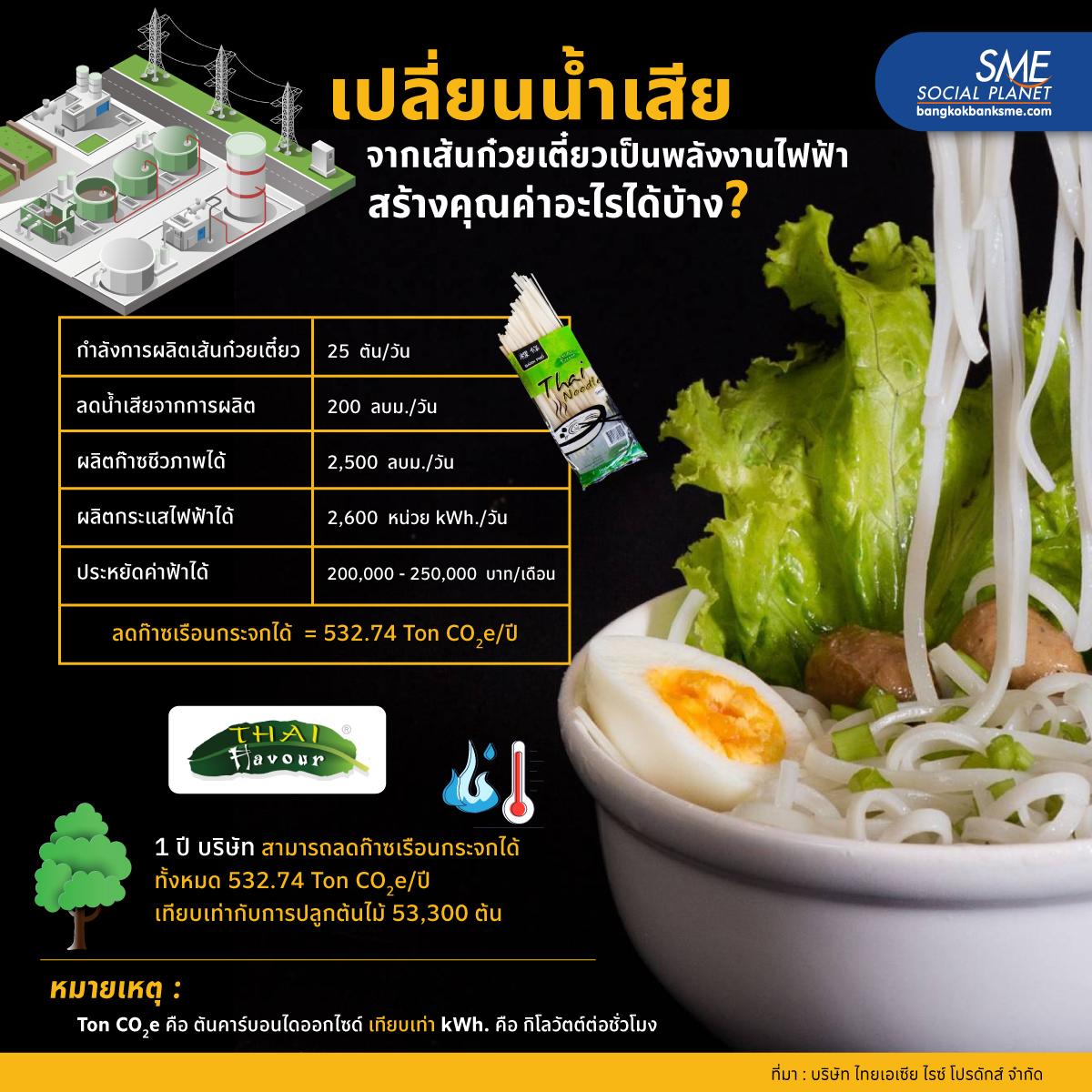 การดำเนินธุรกิจด้วยแนวคิด ESG ที่คำนึงถึงสังคมและสิ่งแวดล้อมของ บริษัท ไทยเอเซีย ไรซ์ โปรดักส์ ที่นำของเสียที่เหลือจากกระบวนการผลิตเส้นก๋วยเตี๋ยว คือ ‘น้ำแป้ง’ มาผลิตเป็นก๊าซชีวภาพ รวมถึงใช้แหล่งพลังงานหมุนเวียนจากธรรมชาติมาแปรเปลี่ยนเป็นพลังงานพลังงานสะอาดที่สร้างคุณประโยชน์ได้ไม่น้อย Bangkok Bank SME ขอพาไปทำความเข้าใจว่าน้ำเสียมีคุณค่าได้อย่างไร แล้วนำไปใช้ประโยชน์อะไรได้บ้าง?