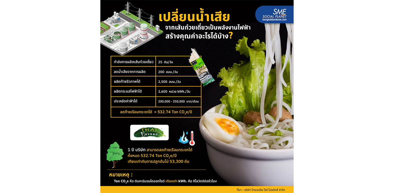 สร้างประโยชน์จาก 'น้ำเสีย' โรงงานเส้นก๋วยเตี๋ยว สู่พลังงานไฟฟ้า