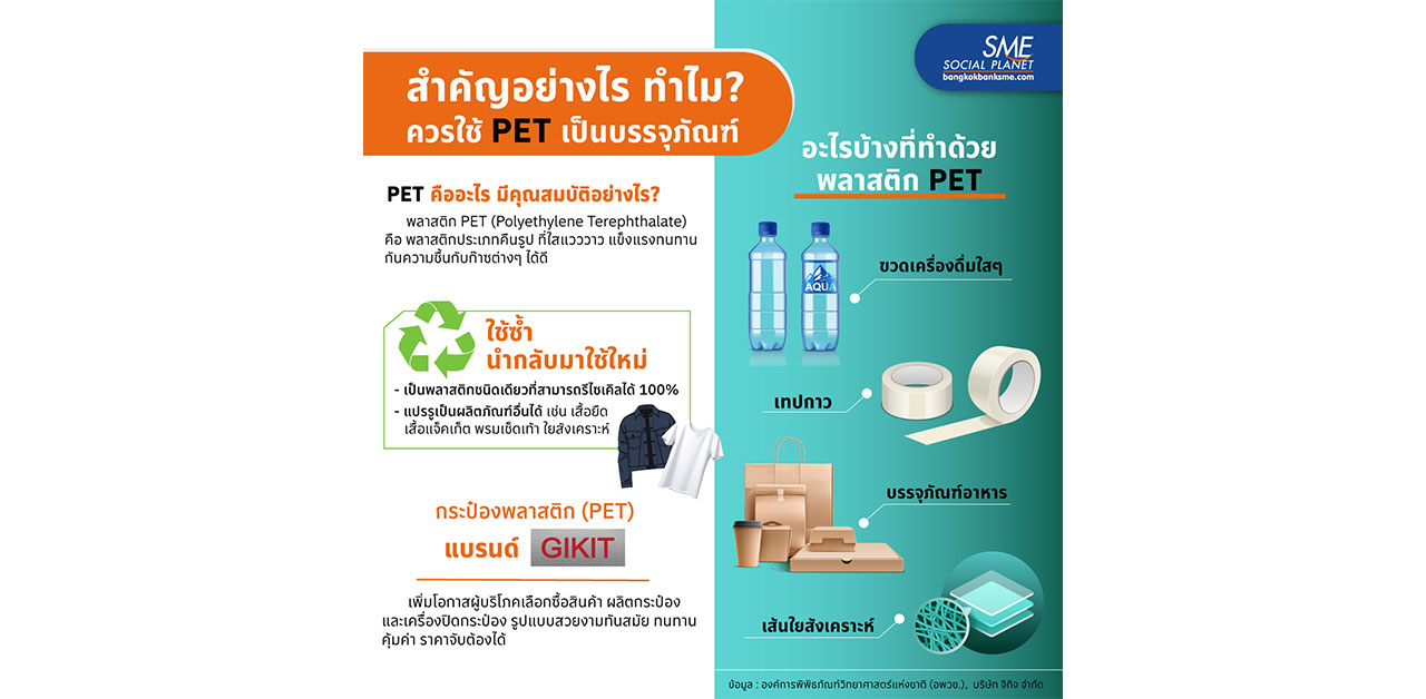ทำไมต้องใช้ PET ผลิตบรรจุภัณฑ์พลาสติก? ในชีวิตประจำวัน สิ่งที่ต้องบริโภคอยู่ทุกวันคือน้ำ เพราะน้ำเป็นสิ่งสำคัญในการดำรงชีวิต ซึ่งบรรจุภัณฑ์น้ำดื่มส่วนใหญ่ล้วนเป็นขวดพลาสติก PET แล้วรู้หรือไม่ว่า PET เป็นพลาสติกชนิดเดียวที่สามารถรีไซเคิลได้ 100%