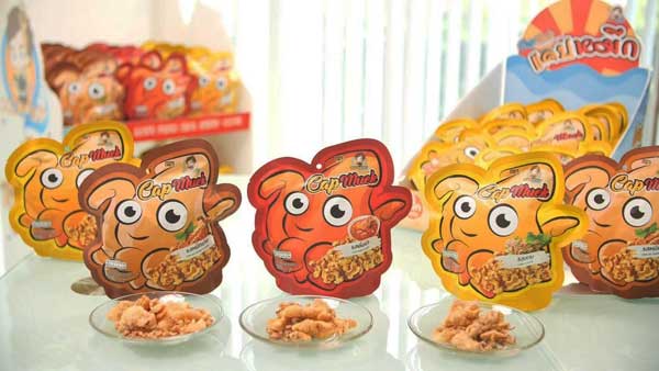 คุณยุวดี ขยายความเรื่องนี้ว่า จุดขายของแคปหมึก คือการทำจากปลาหมึกแท้ที่ไม่ผสมแป้งเลย คำถามที่ตามมาคือ ‘ต้นทุน’ จะสูงมากแค่ไหน คนเพิ่งเคยทำธุรกิจจะบริหารต้นทุนอย่างไร ผลิตออกมาจะขายได้ไหม จะสู้กับคู่แข่งในตลาดได้อย่างไร คำถามเกิดขึ้นมากมาย คุณยุวดี จึงเริ่มมองหาปลาหมึกสายพันธุ์ที่ต้นทุนที่เหมาะสมเพื่อให้แคปหมึกสามารถแข่งขันในตลาดได้ จนพบว่าปลาหมึกกล้วยขนาดเล็ก ที่เรียกกันว่า ‘หมึกกะตอย’ ส่วนใหญ่นำไปตากแห้งขาย ซึ่งไม่ได้เพิ่มมูลค่ามากนัก แถมยังเหนียวอีกด้วย เมื่อนำนวัตกรรมการแปรรูปอาหารมาปรับโฉมให้กลายเป็น แคปหมึก สามารถสร้าง Value และเพิ่มโอกาสในตลาดได้อย่างมาก ที่สำคัญยังช่วยสร้างรายได้เพิ่มให้กับชาวประมงอีกด้วย