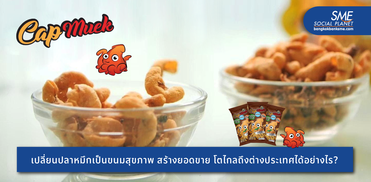 มีผู้ประกอบการไม่น้อยที่เปลี่ยนความชอบเป็น Passion สร้างธุรกิจ เช่นเดียวกับ คุณยุวดี มีทำ กรรมการผู้จัดการ บริษัท แคปหมึก ฟู้ดแอนด์ มาร์เก็ตติ้ง จำกัด เจ้าของผลิตภัณฑ์ ‘แคปหมึก’ ภายใต้แบรนด์ ‘Ocean Boy’ ที่ชื่นชอบการรับประทานปลาหมึกเป็นชีวิตจิตใจ แต่ไม่ได้คิดเพียงว่าทำสินค้าอะไรก็ได้จากปลาหมึก แต่เริ่มจากการค้นหางานวิจัยเพื่อนำมาต่อยอดเป็นผลิตภัณฑ์ที่แตกต่าง จนกลายเป็น ‘แคปหมึก’ ขนมไทยใส่นวัตกรรมที่สะกดใจผู้บริโภคทั้งไทยและต่างประเทศ