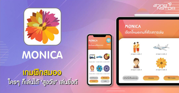 สำหรับ แอปพลิเคชัน อุปกรณ์ และการเล่นเกม Monica ได้รับการออกแบบและพัฒนา โดย ดร.สิทธา สุขกสิ และทีมวิจัยการออกแบบและแก้ปัญหาอุตสาหกรรม ศูนย์เทคโนโลยีโลหะและวัสดุแห่งชาติ (เอ็มเทค) สำนักงานพัฒนาวิทยาศาสตร์และเทคโนโลยีแห่งชาติ (สวทช.) ร่วมกับ บริษัท ดิจิตอล ปิกนิก จำกัด (Digital Picnic Co., Ltd.) เพื่อให้การเล่นเกมตอบโจทย์การฝึกสมอง ฝึกการใช้ความคิด รวมทั้งฝึกการใช้กล้ามเนื้อของผู้สูงอายุได้อย่างมีประสิทธิภาพ