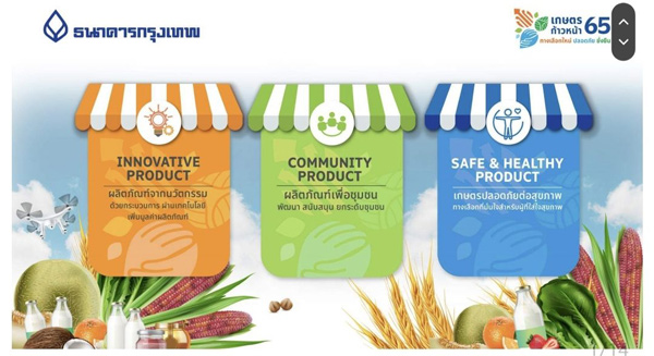 แม้ในช่วงที่ผ่านมา เนื่องด้วยสถานการณ์การแพร่ระบาดของไวรัสโควิด19 ทำให้ธนาคาร จำเป็นต้องงดการจัดกิจกรรม ‘งานวันเกษตรก้าวหน้า ในปี 2563 และปี 2564’ เพื่อรักษาความปลอดภัย ให้กับเกษตรกรและผู้ที่เข้าร่วมงาน แต่ในปีนี้ เมื่อสถานการณ์เริ่มผ่อนคลายลง เพื่อให้เกษตรกรได้นำเสนอสินค้าเกษตรคุณภาพ ธนาคารกรุงเทพ จึงกลับมาจัดงาน วันเกษตรก้าวหน้าประจำปี 2565 ขึ้นอีกครั้ง โดยมีเกษตรก้าวหน้า ร่วมออกบูธกว่า 42 ราย โดยแบ่งหมวดหมู่ออกเป็น 3 หมวด ได้แก่