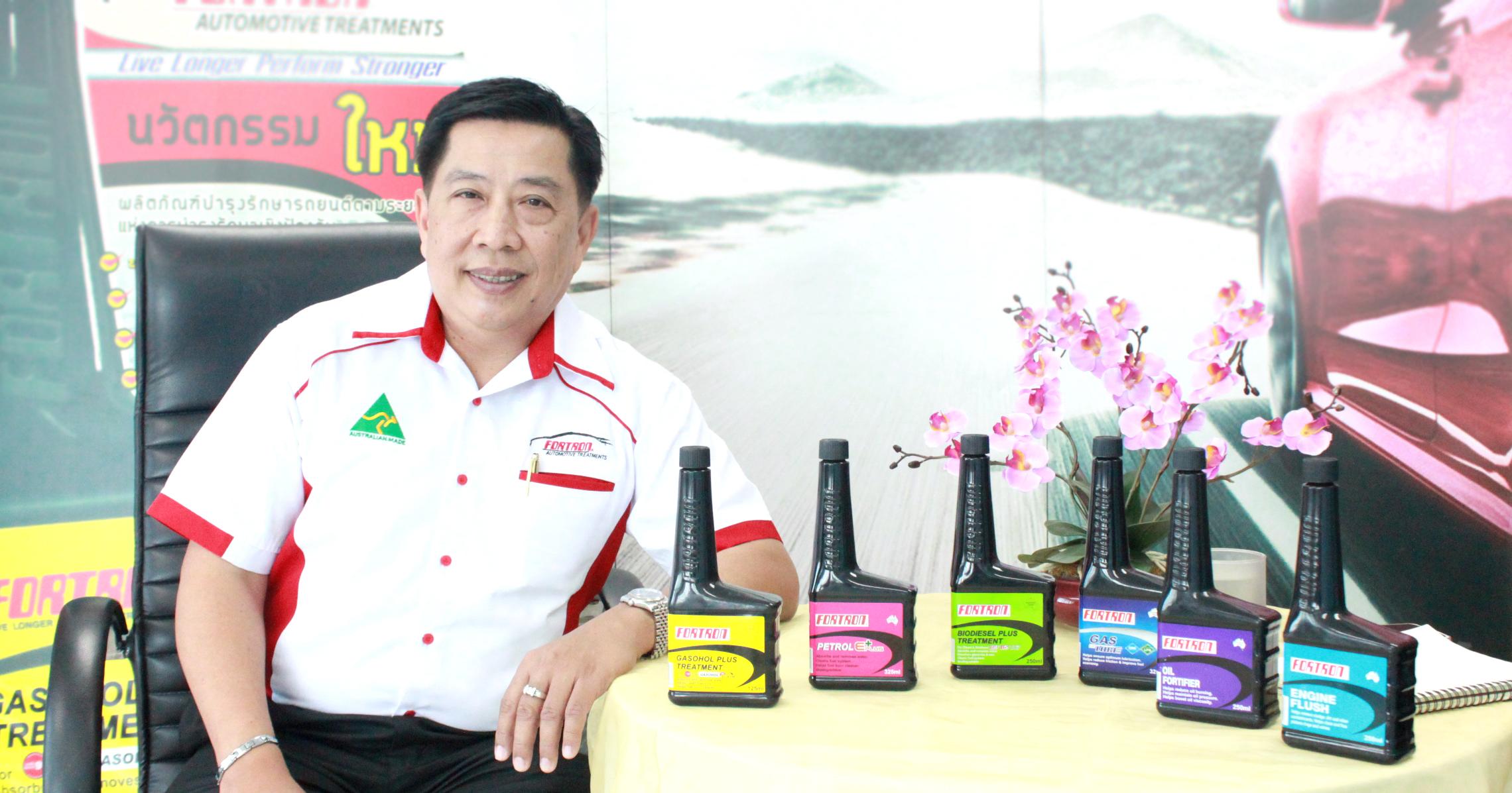 “ช่วงปี 2545 เกิดวาระแห่งชาติเรื่องพลังงานทดแทน ขณะนั้นผู้บริโภคไม่ทราบถึงวิธีการดูแลรถยนต์อย่างแท้จริง ทำให้เกิดผลกระทบด้านรถยนต์หลายทาง จนเป็นคำพูดที่ติดปากว่า “อะไร ๆ ก็โทษแก๊สโซฮอล์” จากนั้นผมและทางออสเตรเลียจึงร่วมกันวิจัยทำการต่อยอดผลิตภัณฑ์เพิ่มและสำเร็จในปี 2548 จากเดิมที่ดูแลแค่น้ำมันเบนซินธรรมดาและน้ำมันดีเซลหมุนเร็วธรรมดา ก็เลยต่อยอดเป็นผลิตภัณฑ์ที่ใช้แก๊สโซฮอล์และไบโอดีเซล ถือว่าเราเป็นรายแรกและหนึ่งเดียวที่ดูแลไบโอดีเซลและแก๊สโซฮอล์ได้ ในรูปแบบผลิตภัณฑ์บำรุงรักษารถยนต์ตามระยะทาง Fortron ที่มีคุณสมบัติครบถ้วนเรื่องดูแลรถสำหรับแก๊สโซฮอล์ E10 91/95 E20 E85 ไบโอดีเซล B5 B7 B10 รถที่ใช้ก๊าซ CNG LPG รวมไปถึงรถยนต์ระบบ HYBRID โดยสามารถขจัดน้ำ สลายไขมันในถังน้ำมัน และระบบเชื้อเพลิง ต้นเหตุที่ทำให้เกิดความชื้นและสิ่งสกปรกในระบบเชื้อเพลิง ทั้งเบนซินและดีเซล ที่เป็นสาเหตุของการทำลายเครื่องยนต์ โดยไม่ส่งผลเสียต่อเครื่องยนต์ทั้งในระยะสั้นและระยะยาว รวมทั้งเป้าหมายของรัฐบาลคือ ต้องไปให้ถึง B 25 และเมื่อพัฒนาถึง B 100 ก็ไม่ต้องพึ่งน้ำมันจากต่างประเทศ”