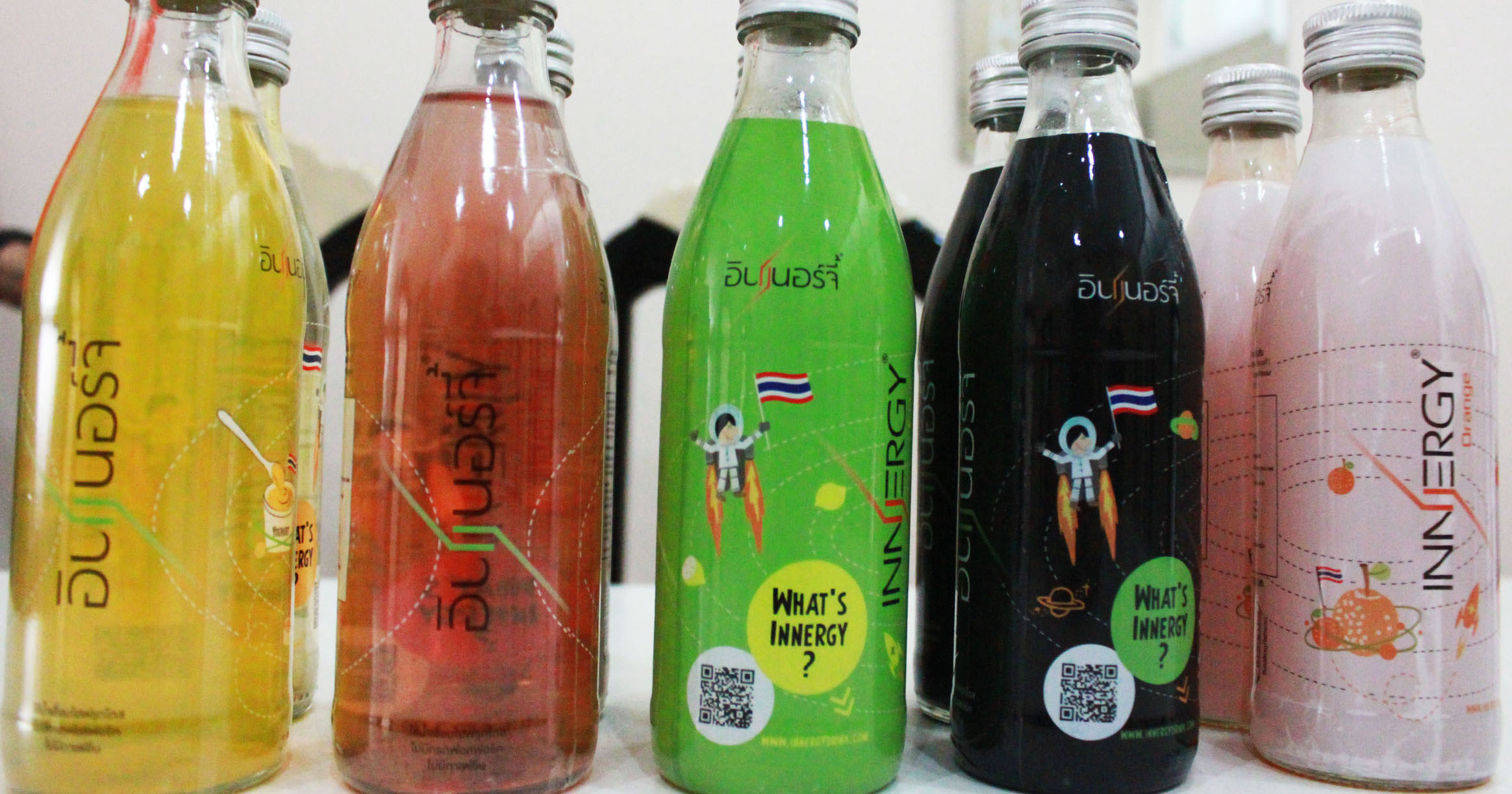 “เครื่องดื่มน้ำผลไม้อินเนอร์จี้ มีทั้งหมด 6 รสชาติ คือ โคล่า มะนาว ผลไม้รวม ลิ้นจี่ โยเกิร์ต และส้ม ซึ่งเป็นสินค้าที่แตกไลน์มาจากอาหารเม็ดบำรุงสุขภาพ ด้วยเงินลงทุน 20 ล้านบาท รวมตัวเทคโนโลยีต่าง ๆ และทุกกระบวนการผลิตผมเป็นคนลงมือทำเองทั้งหมด”