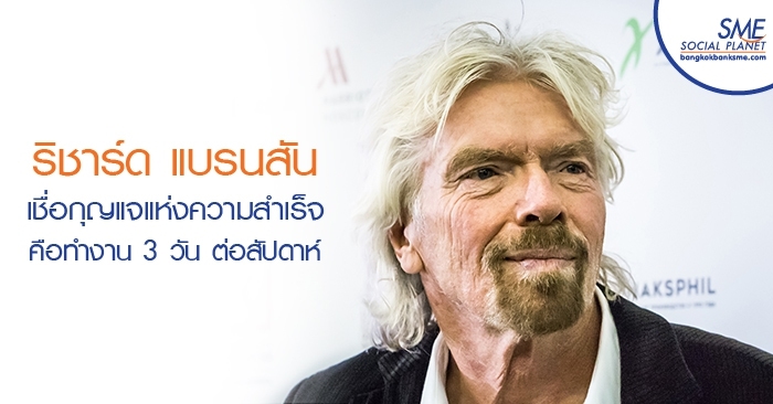 ริชาร์ด แบรนสัน เชื่อกุญแจแห่งความสำเร็จคือทำงาน 3 วันต่อสัปดาห์