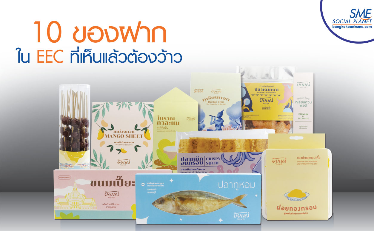 ตัวอย่างที่น่าสนใจในการนำความคิดสร้างสรรค์ในการออกแบบผลิตภัณฑ์มาแปลงโฉมหน้าตา ‘ของฝาก’ แบบเดิมๆ โดยสำนักงานส่งเสริมเศรษฐกิจสร้างสรรค์ (องค์การมหาชน) หรือ CEA ที่ร่วมกับผู้เชี่ยวชาญด้านการสร้างแบรนด์และออกแบบบรรจุภัณฑ์ ดำเนินโครงการพิเศษ ยกระดับบรรจุภัณฑ์ให้มีภาพลักษณ์โฉมใหม่ที่ตรงใจนักท่องเที่ยวมากขึ้น ผ่านลงพื้นที่สำรวจหน้าตาสินค้าและของฝาก 3 จังหวัดในพื้นที่ EEC ทั้ง ฉะเชิงเทรา - ชลบุรี - ระยอง” พร้อมปรับรูปลักษณ์บรรจุภัณฑ์ เช่น ขนมฝอยทอง มะยมเชื่อม ปลาหมึกอบแห้ง และอื่นๆ เพื่อนำไปสู่การยกระดับของฝากโลคอลแบรนด์ ให้มีความทันสมัย แปลกใหม่ ตลอดจนสามารถก้าวข้ามข้อจำกัดและเทียบชั้นกับสินค้าในตลาดโมเดิร์นเทรดได้อย่างมีประสิทธิภาพ