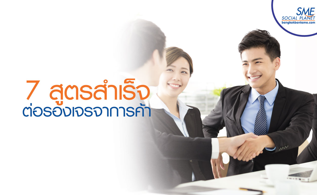 ล่าสุด กรมส่งเสริมการค้าระหว่างประเทศ โดยสถาบันพัฒนาผู้ประกอบการการค้ายุคใหม่(NEA) ได้จัดโครงการสัมมนา “เทคนิคการเจรจาการค้าระหว่างประเทศ สู่ความสำเร็จ” ซึ่งเป็นโครงการที่พัฒนาและส่งเสริม เพิ่มความรู้ ความสามารถและทักษะด้านการเจรจาการค้าให้กับผู้ประกอบธุรกิจการค้าระหว่างประเทศ รวมถึงเปิดฉากการเจรจาการค้า การดำเนินการเจรจา และการชักจูงคู่เจรจา ในรูปแบบการค้าระหว่างประเทศ เพื่อให้ได้ข้อตกลงตามเป้าหมายที่วางไว้ จึงได้ รวบรวม 7 สูตรสำเร็จและเทคนิคต่อรองเจรจาการค้า เพื่อให้ผู้ประกอบการได้นำไปปรับใช้ได้เรียนรู้จุดแข็งและจุดอ่อน เพื่อเป็นนักเจรจาการค้าระหว่างประเทศได้อย่างเป็นมืออาชีพ ดังนี้