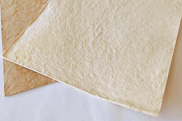 การผลิตเยื่อกระดาษ เป็นการลอกเลียนจากนวัตกรรมสิ่งทอที่สามารถเพิ่มเส้นใยให้กระดาษมีความคงทน แข็งแรง ลวดลายและสีสันสวยงาม ผลิตภัณฑ์ของเรา เน้นทำเหมือนร้านอาหารตามสั่ง โดยสามารถผลิตได้ตามแนวคิดของลูกค้า จากวัสดุหลากหลายประเภท เช่น ใบข้าวโพด ฟางข้าว ปอสา ไผ่ ต้นกล้วย ใบสับปะรด ผักตบชวา ถั่วลิสง มะพร้าว แม้กระทั่ง เปลือกทุเรียน โดยใช้นวัตกรรมเปลี่ยนวัสดุเป็นเยื่อ เพื่อผลิตเป็นกระดาษที่พัฒนารูปแบบให้ตอบโจทย์ความต้องการในอุตสาหกรรมต่าง ๆ