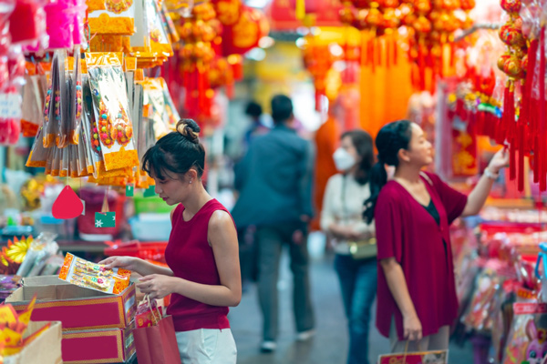 ในช่วงวันตรุษจีน จะมีการทำความสะอาดบ้านเรือน เพื่อผ่านปีใหม่อย่างสะอาดสดใส ร้านค้า ห้างสรรพสินค้า ต่างเต็มไปด้วยผู้คนมาจับจ่ายใช้สอย มีการใส่เสื้อผ้าสีแดงถือเป็นสีที่เป็นมงคล เปรียบเหมือนเป็นการไล่ปีศาจร้ายให้ออกไป และการใส่สีดำหรือขาวเป็นสิ่งต้องห้าม ซึ่งสีเหล่านี้ถือว่าเป็นสีแห่งการไว้ทุกข์