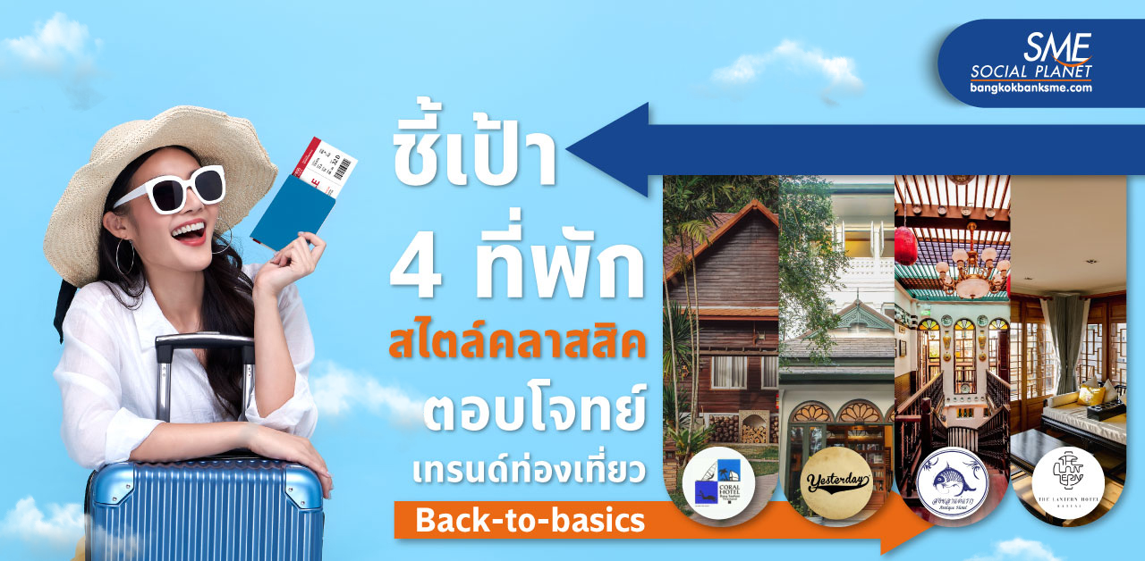 และเพื่อเป็นแนวทางสำหรับนักท่องเที่ยวที่ต้องการมองหาประสบการณ์ย้อนเวลา แบบ Back-to-basics แบบเก๋ ๆ มีสไตล์ Bangkok Bank SME มีที่พัก 4 แห่งที่ตอบโจทย์มาแนะนำ สำหรับไปเช็คอินแบบฟิน ๆ กับบรรยากาศสไตล์เรียบ หรู แต่ดูมีมนต์ขลัง...หากได้ไปเยี่ยมเยือน