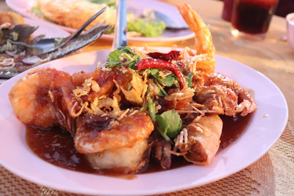 คุณสราวุธ ขยายความว่า นอกจากการส่งเสริมกิจกรรมในชุมชนเพื่อสร้างรายได้แล้ว ด้วยความที่โรงแรมเราอยู่ในพื้นที่หมู่บ้านชาวประมง ซึ่งเป็นชาวประมงเรือเล็ก จะออกจับปลาตอนเย็นและตอนกลางคืน แล้วกลับมาตอนเช้า ซึ่งปลาที่จับได้จึงมีความสดมาก โรงแรมจะรับซื้อไว้เพื่อปรุงเป็นอาหารให้กับลูกค้าของโรงแรมได้รับประทานอาหารพื้นถิ่น ที่นำมาผสมผสานกับเครื่องเทศที่มีคุณภาพจากต่างประเทศ ซึ่งเป็นเครื่องปรุงที่ชาวต่างชาติคุ้นเคยเป็นอย่างดี แล้วมาทำเป็นอาหารในรูปแบบที่ลูกค้าต้องการ ซึ่งเป็นที่ถูกใจของนักท่องเที่ยวเป็นอย่างมาก