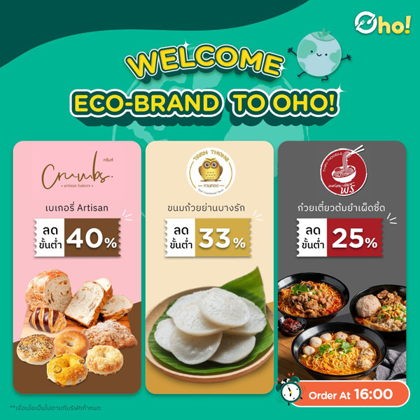 Oho! Sustainable Food Outlet เป็นแอปพลิเคชันสั่งอาหารป้ายเหลืองรักษ์โลกฝีมือคนไทย ที่ช่วยเปลี่ยนธุรกิจอาหารในประเทศให้เป็นมิตรต่อสิ่งแวดล้อมมากขึ้น ด้วยแนวคิด Food Rescue ที่ผู้ขาย ผู้ซื้อ และโลก ต่างได้ประโยชน์ร่วมกัน จากการที่ Oho ได้พูดคุยกับร้านค้ามากกว่า 5,000 แบรนด์ พบว่าไม่ใช่แค่ซูเปอร์มาเก็ตที่มีสินค้าขายไม่หมด แต่ร้านอาหารเกือบทุกประเภทประสบปัญหาต้องทิ้งอาหารคุณภาพดีในแต่ละวัน เช่นเดียวกัน จึงทำให้เกิด Food Tech Solution เพื่อให้คนไทยสามารถร่วมแก้ปัญหา Food Waste ได้ง่าย ๆ
