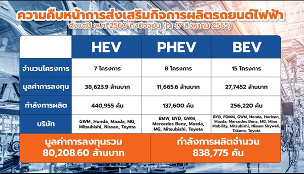 -รัฐบาลออกมาตรการสนับสนุนการผลิตรถยนต์ไฟฟ้าในไทย ทั้งด้านภาษีและเงื่อนไขต่าง ๆ รวมใช้งบไปแล้วถึงราว 4.3 หมื่นล้านบาท