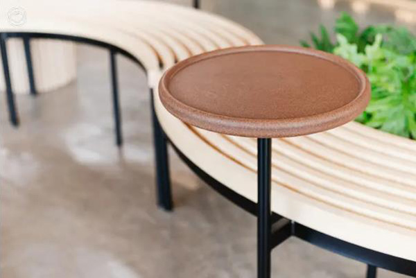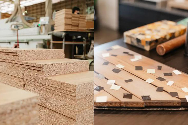 แนวคิด Circular Material การนำวัสดุมาใช้อย่างคุ้มค่ามากที่สุด โดยไม้ปาร์ติเกิ้ลบอร์ดทำมาจากกิ่งและก้านของไม้ยางพารา นำมาสับและอัดเป็นวัสดุทางเลือกทดแทนไม้ ซึ่งแต่เดิม คุณชนน บอกว่า การปิดผิวหน้าของวัสดุประเภทนี้ยังไม่คงทนแข็งแรง แต่ด้วยเทคโนโลยีสมัยใหม่ในปัจจุบันทำให้การเคลือบผิวหน้าวัสดุมีคุณภาพมากขึ้น เช่น การเคลือบผิวเมลามีนที่ใช้กับวัสดุประเภทจานชาม สามารถกันไอน้ำ ความร้อน และรอยขีดข่วนได้ดียิ่งขึ้น และบางขณะยังมีคุณสมบัติที่ดีกว่าไม้จริงด้วยซ้ำไป