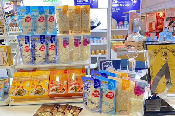 นอกจากผลิตภัณฑ์หลากหลายของแบรนด์ ‘เส้นไข่ขาว นิ่มนิ่ม’ ไม่ว่าจะเป็น เส้นไข่ขาว เส้นหมี่ไข่ขาว สปาเก็ตตี้ไร้แป้ง ข้าวไข่ขาว และไข่มุกไข่ขาว