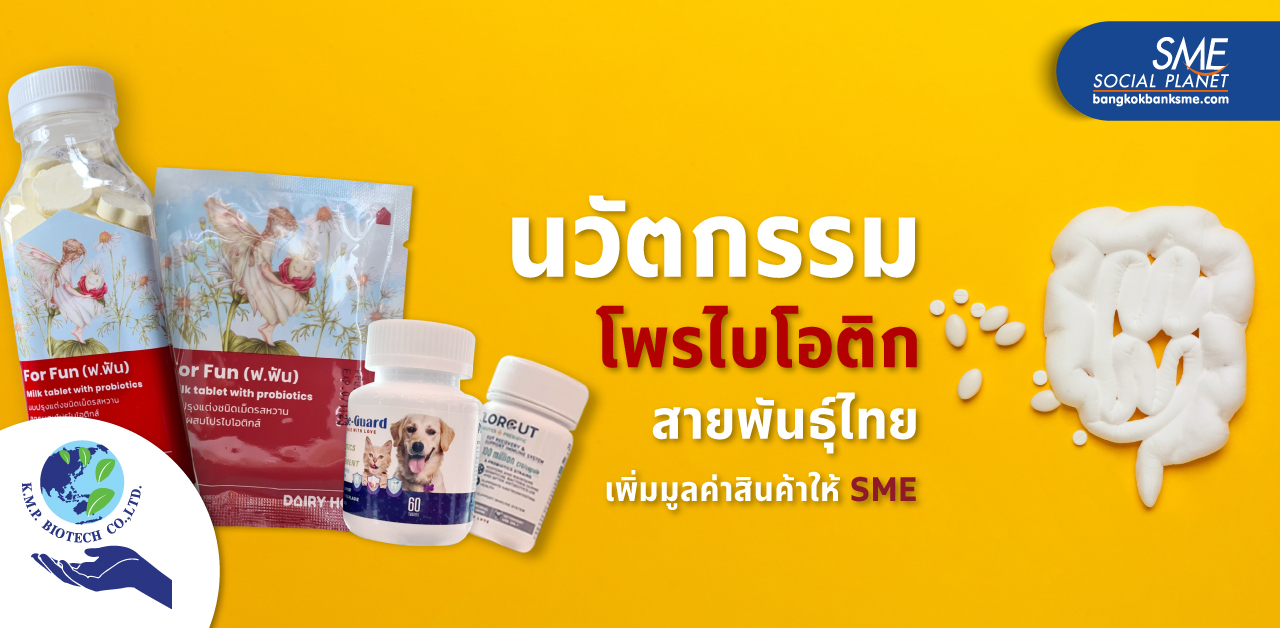 มองเป็นเห็นโอกาส Bangkok Bank SME ขอพามาทำความรู้จักกับ บริษัทเค.เอ็ม.พี.ไบโอเทค จำกัด (K.M.P. Biotech co., Ltd.) ผู้ผลิตผงโพรไบโอติก (Probiotic) สัญชาติไทย ออกสู่อุตสาหกรรมอาหารเสริมสำหรับคน และสัตว์ ทั้งในประเทศ และอีกกว่า 13 ประเทศทั่วโลก