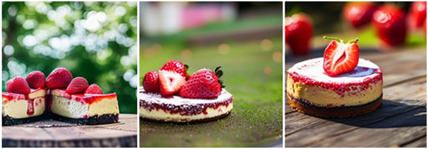 Prompt: strawberry cheesecake, garden background, professional photography, bokeh, natural lighting, canon lens, shot on dslr 64 megapixels sharp focus