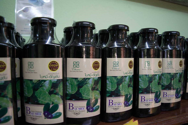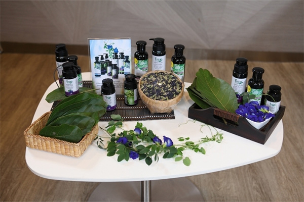 2.กลุ่มผลิตภัณฑ์ดูแลเส้นผม เช่น แชมพูใบหมี่ – ดอกอัญชัน สารสกัดจากใบหมี่พืชสมุนไพรท้องถิ่นที่พบมากในเขตภาคเหนือและภาคอีสาน และดอกอัญชัน