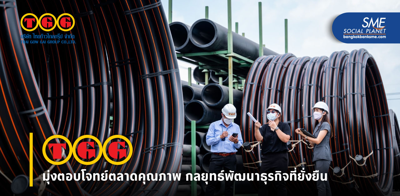 SME in Focus จะนำทุกท่านไปรู้จักกับ บริษัท ไทยก้าวไกลกรุ๊ป จำกัด หรือ “TGG” ผู้ผลิตและจำหน่าย ท่อและอุปกรณ์ HDPE และแผ่นปูพื้น PE sheet (HDPE Geomembrane) ชั้นนำของไทย ที่ได้มีส่วนร่วมในการพัฒนาสาธารณูปโภค การพัฒนาโครงสร้างพื้นฐาน ทั้งระบบประปา ไฟฟ้า โครงการก่อสร้างขนาดใหญ่ของทั้งภาครัฐและภาคเอกชน และระบบน้ำในภาคเกษตร ภายใต้แบรนด์ ‘TGG’