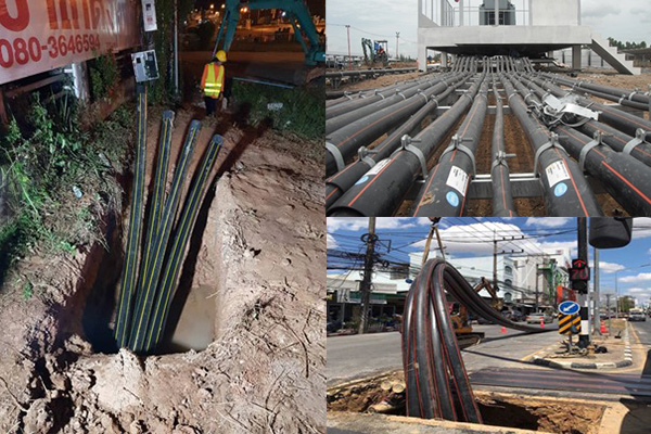 ซึ่งเป็นท่อคาดสีส้มที่สามารถพบเห็นได้ในโครงการย้ายสายไฟลงดิน ที่มีการขุดเพื่อเปิดหน้าดินบางส่วน แล้วใช้วิธีการ HDD (Horizontal Directional Drilling) เพื่อเดินสายไฟใต้ดินในระยะทางที่ยาวโดยไม่จำเป็นต้องขุดเปิดหน้าดิน ลดปัญหาด้านการจราจรได้เป็นอย่างดี