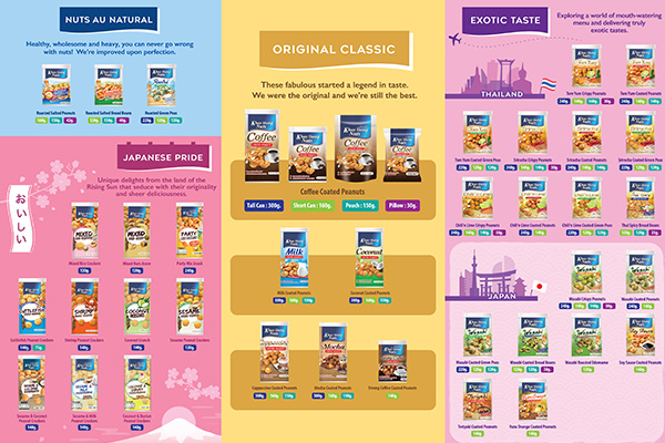 รวมถึงรสชาติสากล อาทิ รสวาซาบิ ปลาหมึก กุ้ง ต้มยำ ซอสศรีราชา และสารพัดรสชาตินานาชาติ ที่นำมาประยุกต์เพื่อสร้างความหลากหลายให้สินค้า มีแม้กระทั่งถั่วลิงสงเคลือบกลิ่นเบียร์ (No Alcohol) โดยใช้แนวคิดการพัฒนาสินค้า เพื่อสร้างความหลากหลายและลูกเล่นแปลกใหม่สู่ตลาดอยู่เสมอ