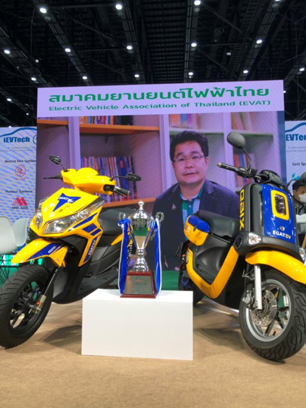ผศ.ดร.อุเทน สุปัตติ อุปนายกสมาคมยานยนต์ไฟฟ้าไทย ฝ่ายวิชาการ กล่าวว่า Electric Motorcycle Smart ที่นำมาแสดงในงานนี้ เป็นรถจักรยานยนต์ไฟฟ้า ที่ดัดแปลงมาจากรถใช้น้ำมัน ที่ได้เข้าร่วมในงานแข่งขันรถจักรยานยนต์ไฟฟ้าดัดแปลงเพื่อธุรกิจแห่งอนาคตครั้งที่ 2 จัดโดยสมาคมยานยนต์ไฟฟ้าไทย ร่วมกับ การไฟฟ้าฝ่ายผลิตเเห่งประเทศไทย และมหาวิทยาลัยเกษตรศาสตร์ วิทยาเขตศรีราชา เพื่อสนับสนุนการพัฒนาบุคลากรด้านยานยนต์ไฟฟ้า รองรับการเติบโตอย่างก้าวกระโดดของอุตสาหกรรมยานยนต์ไฟฟ้าสมัยใหม่ในปัจจุบัน ซึ่งทั้ง 2 คัน ได้รับรางวัลทั้งในภาคสถาบันการศึกษา และประชาชนทั่วไป โดยข้อมูลจากใช้งานของ Electric Motorcycle Smart ใช้แบตเตอรี่ Lithium Nickel Manganese Cobalt Oxide (NMC) ทำความเร็วสูงสุดที่ 100 Km/h ระยะทางสูงสุด 80-100 Km/h ใช้ระยะเวลาชาร์จแบตเตอรี่ 6 ชั่วโมง