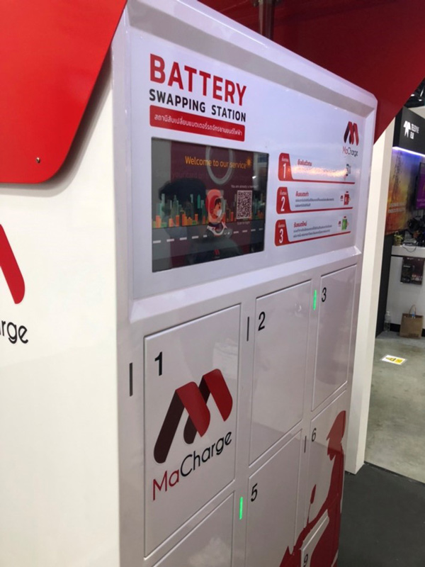 “แพลตฟอร์มมาชาร์จ” Ma Charge Cloud หรือ MCC สำหรับรถจักรยานยนต์ไฟฟ้า (EV bike) โดย บมจ.เอเจ แอดวานซ์ เทคโนโลยี และ บมจ.เอเอ็มอาร์ เอเซีย ที่ได้ร่วมกันศึกษาและพัฒนาธุรกิจขายและให้เช่า EV bike และการติดตั้งสถานีแบตเตอรี่ EV bike รวมถึงการให้บริการสถานีสับเปลี่ยนแบตเตอรี่ให้กับผู้ใช้ EV bikeในประเทศไทย เป็นอีกหนึ่งบูทที่น่าสนใจ ซึ่งพัฒนาแพลตฟอร์มของรถจักรยานยนต์ไฟฟ้า “มาชาร์จ แพลตฟอร์ม” ให้บริการกับผู้ประกอบการ และผู้บริหารเมืองที่สนใจนำแพลตฟอร์มไปให้บริการกับประชาชนในท้องถิ่น
