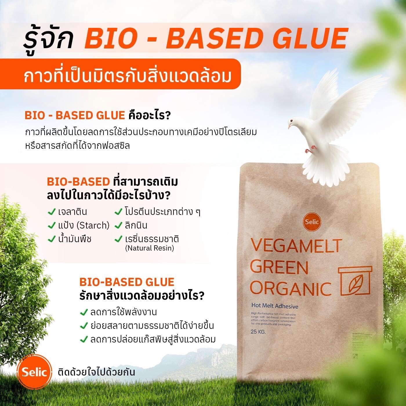 สำหรับผลิตภัณฑ์ใส่ใจสิ่งแวดล้อม คือกลุ่มผลิตภัณฑ์กาวหลอมร้อนรักษ์โลก ซึ่งเป็นกาวกลุ่ม hotmelt ที่มีส่วนผสม ของมวลสารชีวภาพเข้าไปเพื่อลดการใช้วัตถุดิบที่ผลิตจาก fossil fuel หรือผลิตภัณฑ์ที่มาจากการทับถมน้อยลง เป็นการช่วยลดการปล่อยก๊าซเรือนกระจกในกระบวนการผลิตให้กับลูกค้าได้อีกทางหนึ่ง