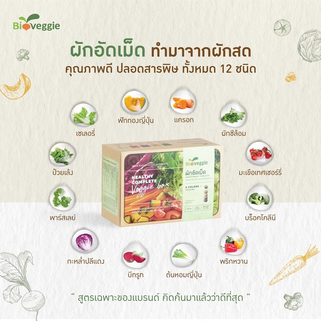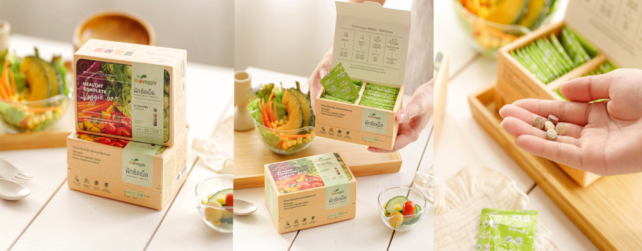 คุณวิริยา ให้มุมมองว่า ตั้งแต่เริ่มธุรกิจ เรามองเทรนด์โลกในอนาคตว่า ทุกคนจะหันมาใส่ใจเรื่องสุขภาพมากขึ้นเรื่อย ๆ ขณะที่พืชผักผลไม้นับวันจะขาดแคลน และราคาสูงขึ้น หากนำมาแปรรูปเป็นเม็ดจะช่วยให้เข้าถึงการกินผักได้ง่าย ตอบโจทย์เทรนด์รักสุขภาพ จึงคัดเลือกผักสด 12 ชนิดที่ผ่านการวิจัยมาแล้วว่าให้สารอาหารครบถ้วน ได้แก่ บีตรูต ปวยเล้ง เซอเลอรี บรอกโคลี พาร์สลีย์ ฟักทองญี่ปุ่น ผักชีล้อม มะเขือเทศเชอร์รี แครอท กะหล่ำปลีแดง พริกหวาน และต้นหอมญี่ปุ่น เข้าสู่กระบวนการสกัดจนกลายเป็นผงวิตามิน ตามด้วยอัดเป็นเม็ดๆ จำนวน 5 เม็ด 5 สี ด้วยเหตุผลถ้าอัดเป็นเม็ดเดียวจะขนาดใหญ่ กินยากเกินไป ซึ่งกิน 5 เม็ดจะได้สารอาหารเทียบเท่ากินผักสดในปริมาณ 150 กรัม โดยรับซื้อตรงมาจากโครงการหลวง