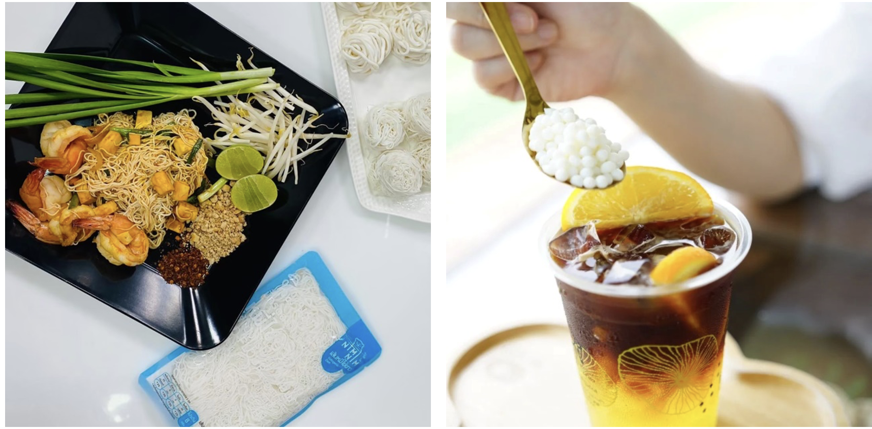 เทคโนโลยีนี้ จะช่วยเปลี่ยนไข่ขาวให้เป็นเส้นได้ เช่น ไข่มุกไข่ขาว เราตั้งใจทำเพื่อคนชอบของหวาน ใส่ในขนม ไอศกรีม หรือชานมแทนไข่มุก หรือเส้นไข่ขาวเอาไปรับประทานกับส้มตำ ก็ได้รับผลตอบรับที่ดีมาก จนร้านค้า และห้างสรรพสินค้า อยากได้ไปขาย ทำให้รู้ว่า ยังมีลูกค้าจำนวนมากต้องการอาหารที่ทดแทนข้าวได้ ซึ่งปีที่ผ่านมา เราได้พัฒนานวัตกรรมใหม่ คือ ‘ข้าวไข่ขาวไร้แป้ง’ ที่มีเนื้อสัมผัสนุ่ม ละมุนเหมือนข้าวจริง หลังจากเปิดตัว ได้รับความสนใจอย่างมาก