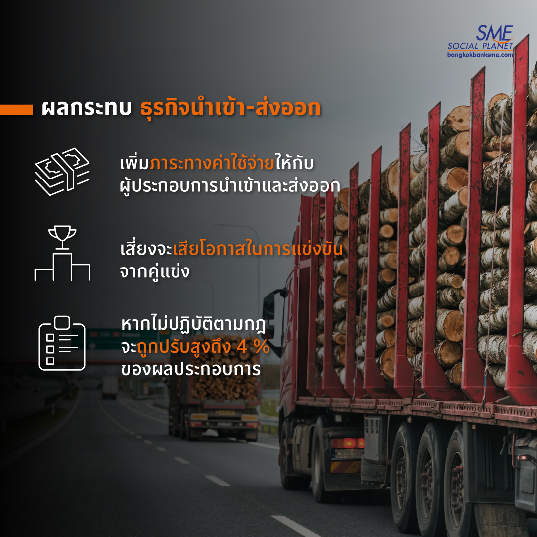 แต่ยากที่จะปฏิเสธว่าในกระบวนการตรวจสอบและประเมินสินค้า (Due diligence) ซึ่งเป็นส่วนหนึ่งของกระบวนการที่สำคัญของกฎหมายว่าด้วยสินค้าที่ปลอดจากการตัดไม้ทำลายป่า (Deforestation-free products) อาจส่งผลกระทบต่อการนำเข้าและส่งออก โดยเพิ่มภาระทางค่าใช้จ่ายให้กับผู้ประกอบการและผู้ค้าอย่างหลีกเลี่ยงไม่ได้ ซึ่งเป็นอีกหนึ่งประเด็นที่ต้องติดตามว่าทุกภาคส่วน จะมีแนวทางอย่างไรเพื่อรับมือและแก้ไขปัญหาดังกล่าว