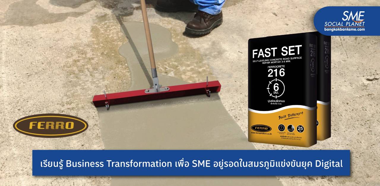 ยุคสมัยเปลี่ยนแนวคิดการทำธุรกิจก็ต้องปรับ เพื่อการเติบโตต่อยอดและอยู่รอดในสมรภูมิการแข่งขันของภาคธุรกิจในยุคดิจิทัล บริษัท เฟอร์โร คอนสตรัคชั่น โปรดักส์ จำกัด ถือเป็นอีกหนึ่งกิจการที่น่าสนใจ เพราะมีการ Business Transformation เนื่องจากถูกโควิด 19 ดิสรัปชัน สู่การปรับเปลี่ยนแนวทางการทำธุรกิจจากผู้แทนจำหน่ายเคมีสำหรับงานก่อสร้าง มาเป็นการผลิตสินค้าแบรนด์ตัวเอง ได้แก่ ปูนซ่อมผิวถนนแบรนด์ ‘เฟอร์โรกรีต 216’ และน้ำยาเคลือบพื้นกันลื่นแบรนด์ ‘ไบโอพ็อกซ์ ’ สร้างรายได้หลักหลายร้อยล้านบาทต่อปี ที่เตรียมเปิดตัวสินค้าพื้นยางแบบพิเศษ ป้องกันผู้สูงอายุเกิดอุบัติเหตุล้มแล้วกระดูกหัก ตอบโจทย์ Aging society ก่อเกิด Case Study ให้ผู้ประกอบการและ SME บ้านเรา นำไปปรับใช้สร้างประโยชน์กับองค์กรตนเอง