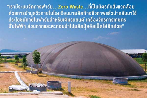 ความโดดเด่นที่น่าสนใจ คือการใช้หลักการบริหารจัดการในลักษณะของฟาร์ม Zero Waste หรือการลดปริมาณขยะให้เหลือน้อยที่สุด หรือไม่สร้างขยะเลย (0%) รวมถึงหันมาการใช้ ไบโอแก๊ส (Biogas) ซึ่งเป็นแก๊สที่เกิดขึ้นตามธรรมชาติ จากการย่อยสลายสารอินทรีย์และมีการปรับปรุงก๊าซชีวภาพ เพื่อผลิตก๊าซไบโอมีเทนอัด (CBG) เพื่อเป็นเชื้อเพลิงหมุนเวียนสำหรับใช้งานในฟาร์ม