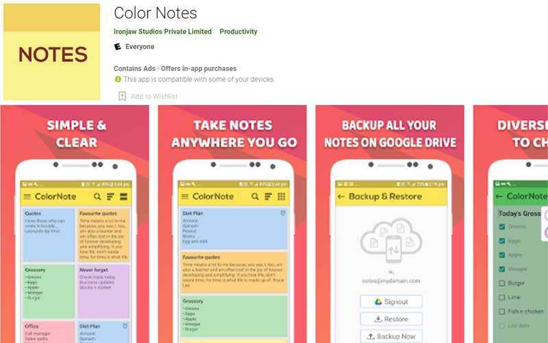 เป็นอีกแอปพลิเคชันตัวช่วยที่ออกแบบมาให้ใช้งานได้ง่ายมีความสบายตา โดยจะสร้างเป็นโน้ตบันทึกช่วยจำในเรื่องต่างๆ หลากสี หรือทำเป็น Checklist ก็ได้เช่นกัน สามารถจดบันทึกสิ่งต่างๆ ลงไปโดยไม่ต้องใช้กระดาษหรือปากกา