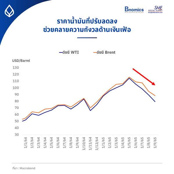 ซึ่งถึงแม้อัตราเงินเฟ้อพื้นฐานและราคาสินค้าอาหารจะยังไม่ได้ปรับลดลงอย่างมีนัยยะสำคัญ แต่ราคาพลังงานโลก ซึ่งเป็นตัวการตั้งต้นของเงินเฟ้อในปัจจุบันได้ปรับลดลงอย่างต่อเนื่อง