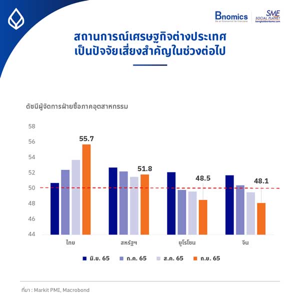 ส่วนสหรัฐฯ แม้ดัชนี PMI ภาคการผลิตจะอยู่ในระดับสูงกว่า 50 อยู่ แต่ก็เป็นระดับที่ลดลงจากเมื่อช่วงต้นปี และแนวโน้มต่อไปก็มีโอกาสที่จะปรับลดลงไปต่อ
