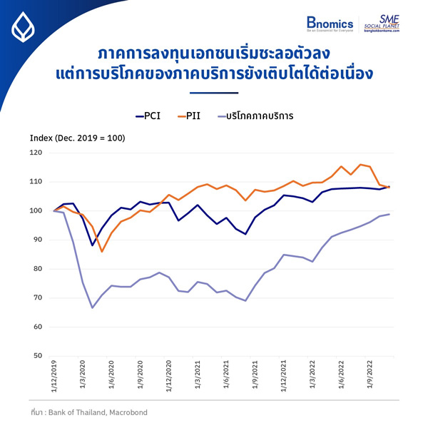 แต่การบริโภคภาคบริการปรับตัวดีขึ้นอย่างต่อเนื่อง จนในตอนนี้ใกล้กลับเข้าสู่ระดับเดียวกับช่วงก่อนการแพร่ระบาดของโควิดเป็นที่เรียบร้อย ซึ่งก็เกิดมาจากการใช้จ่ายของนักท่องเที่ยวต่างชาติที่เข้ามาเที่ยวในช่วงฤดูกาลที่ผ่านมา