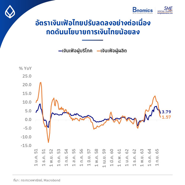 นอกจากนี้ อัตราเงินเฟ้อที่ปรับตัวเข้าสู่กรอบเป้าหมายก็อาจจะเปิดโอกาสให้ธนาคารแห่งประเทศไทยไม่จำเป็นต้องขึ้นดอกเบี้ยนโยบายไปสูงจนเกินไป และอาจจะสามารถให้น้ำหนักนโยบายกับสภาวะเศรษฐกิจในประเทศเพิ่มขึ้นได้