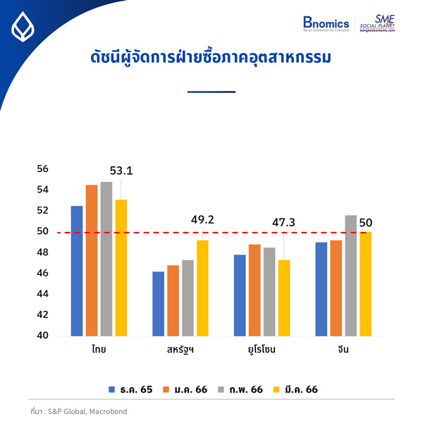 แต่ในส่วนดัชนี PMI ของไทยที่แม้จะปรับลดลงมาเล็กน้อย ก็ยังอยู่เหนือระดับ 50 อยู่ที่ 53.1 แสดงถึงการขยายตัวในมุมมองของเศรษฐกิจไทยอยู่ในช่วงถัดไป