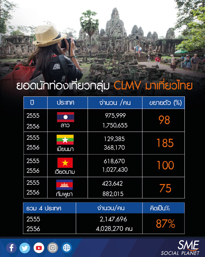 CLMV นิยมเดินทางมาท่องเที่ยวมากที่สุด เนื่องจากการเดินทางไปมาไทยทั้งทางบกและทางอากาศแสนสะดวกสะบายใช้เวลาไม่นาน