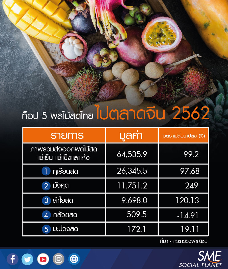 และมังคุด ซึ่งกว่า 50% ผลผลิตทุเรียนส่งออกไปยังตลาดจีน